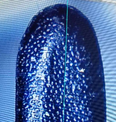 Magnified view of ceramic surface treatment applied to an electrosurgical electrode after use.